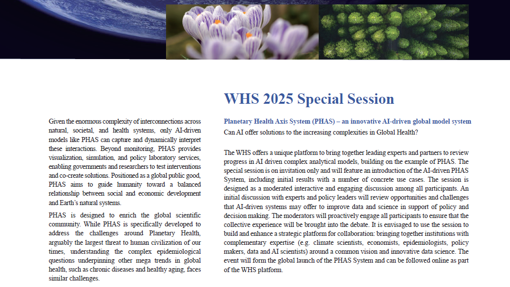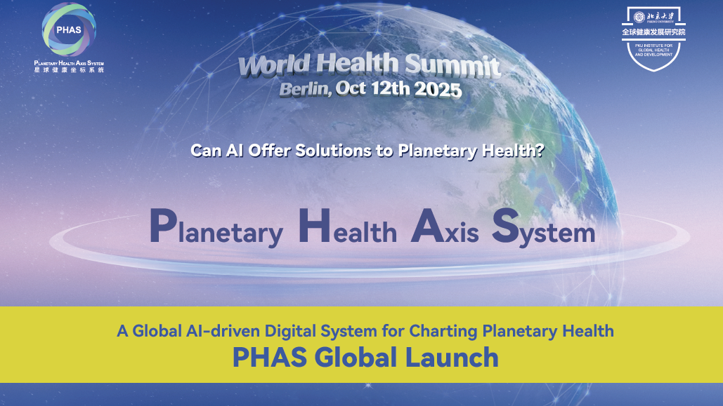 北大PHAS系统定于2025 年 10 月 12日下午16:00-17:30(德国时间)于柏林举行的“世界健康峰会 2025”上首发,为构建人类命运共同体贡献力量,助力全球治理、星球健康与人类可持续发展。